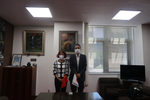 2022年9月7日,驻札幌总领事刘亚明拜会弘前大学校长福田真作,弘前大学国际连协本部部长杉原香等在座。