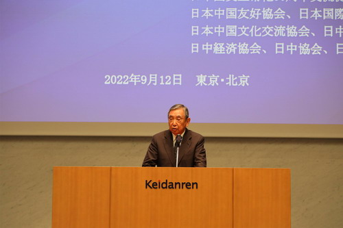 十仓会长致辞表示,日中邦交正常化以来,两国经贸投资迅速增长,互利合作日益紧密,成为支撑两国关系发展的重要基础。当前国际局势更加动荡不安,双方加强各层级、各领域对话沟通,对于构建建设性、稳定的日中关系至关重要。经团联作为日方纪念日中邦交正常化50周年执行委员会牵头单位,将继续同日中两国有关方面加强协作,共同办好150多项纪念活动,积极推进两国各领域交流合作。