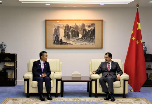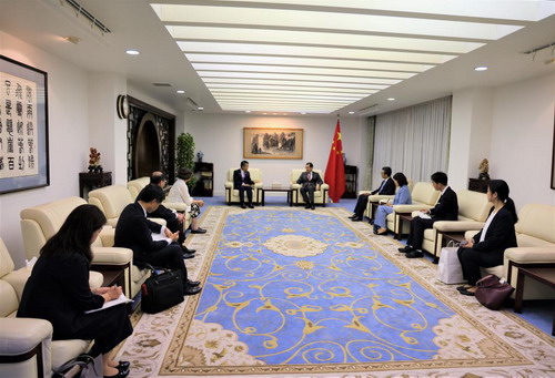 2025年9月12日,驻日本大使吴江浩会见滋贺县知事三日月大造。