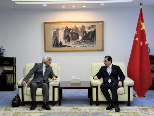 2025年9月22日,驻日本大使吴江浩会见日中协会新任理事长服部健治。