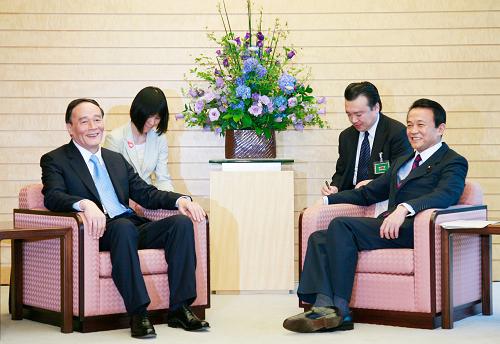 2009年6月8日,日本首相麻生太郎在东京会见了中国国务院副总理王岐山。