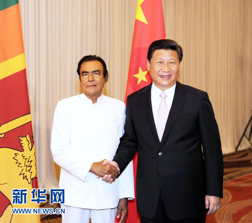 2014年9月17日,国家主席习近平在科伦坡会见斯里兰卡总理贾亚拉特纳。