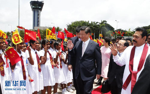 当地时间9月17日,国家主席习近平结束对斯里兰卡的国事访问,启程前往艾哈迈达巴德开始对印度进行国事访问,斯里兰卡总统拉贾帕克萨专程到机场送行。