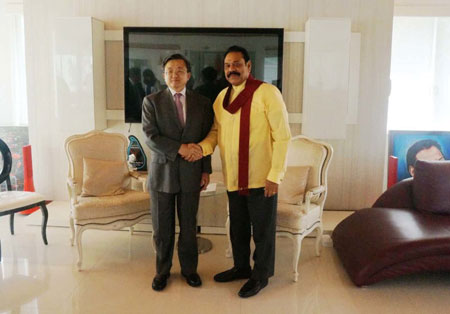 2015年10月8日,中国政府特使、外交部副部长刘振民在科伦坡会见斯里兰卡前总统拉贾帕克萨。