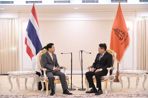 2024年12月9日,驻泰国大使韩志强赴泰国总检察长办公室拜会泰国新任总检察长派叻。
