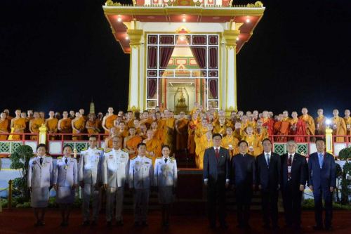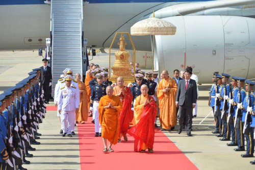 2024年12月4日,应泰国政府邀请,为庆祝泰国国王哇集拉隆功六循(72岁)寿辰和2025年中泰建交50周年,北京灵光寺佛牙舍利抵达泰国供奉。中央统战部副部长、国家宗教事务局局长陈瑞峰,驻泰国大使韩志强,中国佛教协会会长演觉,以及泰国总理佩通坦,副总理兼国防部长普坦,副总理兼交通部长素里亚等出席佛牙舍利迎请和供奉典礼。