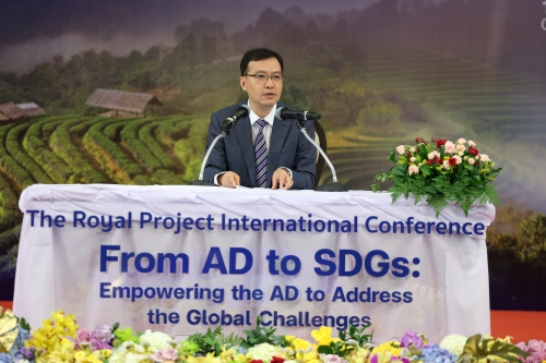 2024年12月2日,驻清迈总领事陈海平出席泰国王家项目可持续发展国际研讨会,发表《中国减贫四十年:成功故事及下一步计划》演讲,全面介绍中国减贫事业历史性成就和重要经验。泰国枢密院大臣、泰国王家项目秘书长甘巴纳主持,来自29国450名代表参加。
