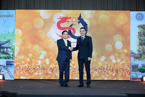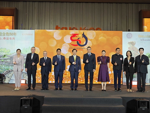 2024年11月19日,中泰建交50周年纪念标识发布会在曼谷举行。泰国外长玛里、驻泰国大使韩志强发表致辞,两国主管部门、商界、青年及媒体代表约200人出席,各界畅叙中泰友谊,展望美好未来,气氛友好热烈。