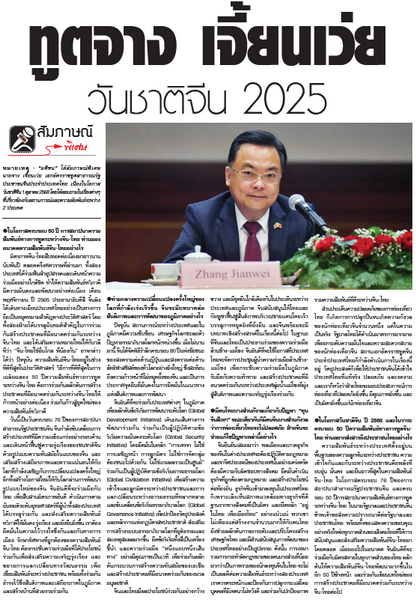 2025年10月1日,驻泰国大使张建卫接受泰国《民意报》书面采访,全文如下: