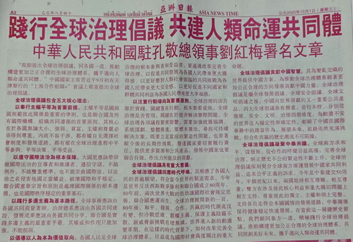 2025年10月10日,驻孔敬总领事刘红梅在《亚洲日报》、《泰东北月报》发表题为《践行全球治理倡议 共建人类命运共同体》署名文章。全文如下: