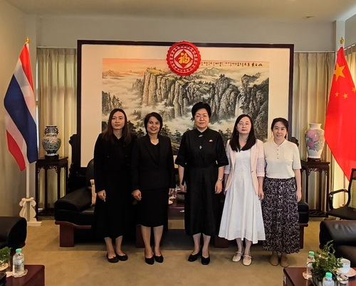 2025年10月28日,驻孔敬总领事刘红梅会见孔敬商务局新任局长侬努一行。