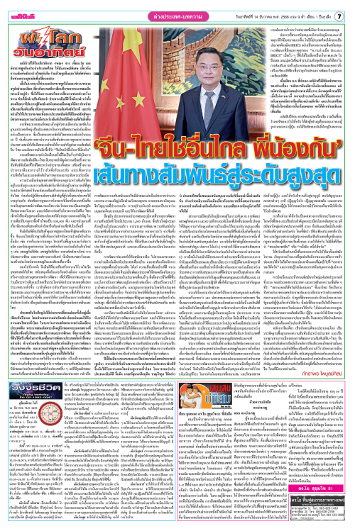 2025年12月4日,驻泰国大使张建卫接受泰国《每日新闻》采访,采访内容于12月15日播出,答问实录如下: