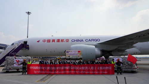 张大使表示,中国政府向受到泰柬边境冲突影响的泰国民众提供2000万元人民币人道主义援助。今天自上海包机运抵曼谷的物资主要包括衣物食品等泰方急需物品,这些物资承载“中泰一家亲”特殊友好情谊,相信将帮助泰边民缓解燃眉之急,早日恢复正常生活。中方期待泰柬落实好抚仙会晤共识,巩固持续性停火,友好协商解决争端,中方愿继续发挥建设性作用。