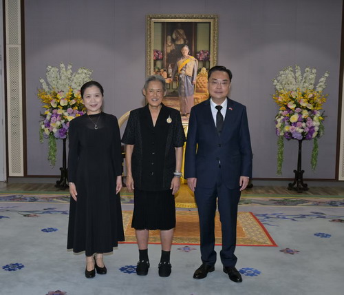 2026年2月9日,驻泰国大使张建卫偕夫人苗海燕赴莎巴吞宫正式拜会诗琳通公主。