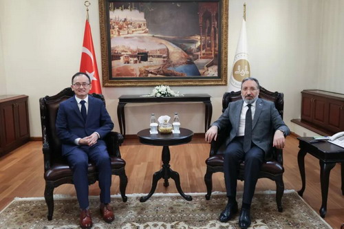 2025年12月31日,驻土耳其大使姜学斌会见土耳其宗教事务局长阿尔帕古什,双方就宗教文化交流等交换意见。
