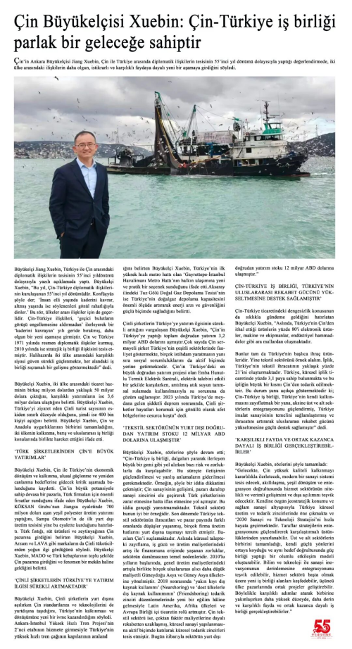 2026年2月5日,驻土耳其大使姜学斌在土耳其主流媒体德米罗兰通讯社、《每日晨报》发表署名文章《中土合作前景光明》,全文如下: