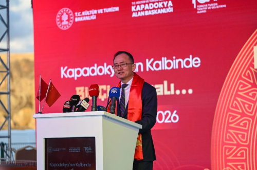 2026年2月14日,驻土耳其使馆同土文旅部联合举办的马年“欢乐春节”系列活动在土骏马之乡卡帕多奇亚开幕。驻土耳其大使姜学斌、土文旅部副部长亚兹格、内夫谢希尔省长菲丹、市长阿勒等出席并致辞,各届代表及各地游客共约500人参加。