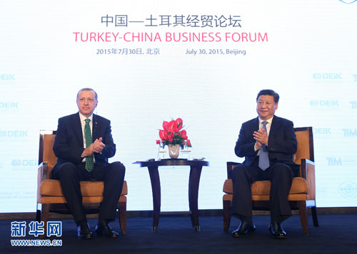 2015年7月30日,国家主席习近平和土耳其总统埃尔多安共同出席在北京举行的中国-土耳其经贸论坛并致辞。