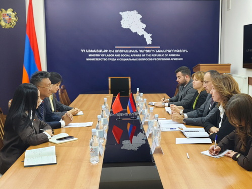2025年11月7日,驻亚美尼亚大使李鑫炜拜会亚劳动和社会事务部部长托罗相。