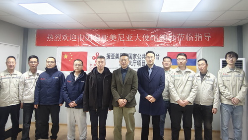 2026年2月11日,农历马年春节前夕,驻亚美尼亚大使李鑫炜走访援亚国家公共电视台演播大厅项目,慰问一线中方员工并向其致以新春祝福。