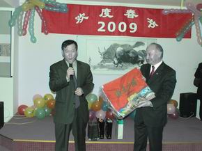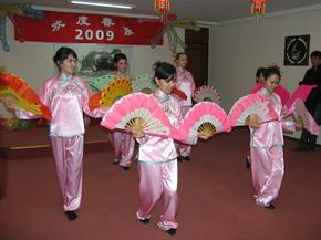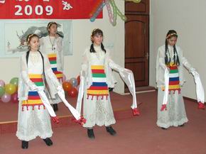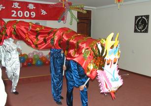晚会上,孔子学院的师生们表演了精心编排的舞龙、藏族舞、扇子舞、武术、汉语童话剧、汉语歌曲等节目。演出结束后,于大使向孔子学院赠送了节日礼品,并与师生们合影留念。