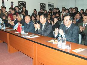 马纳诺夫院长在讲话时表示,塔什干孔子学院近几年发展很快,目前已经成为在乌兹别克斯坦享有一定威望的汉语教学机构,这与中国驻乌兹别克斯坦使馆的支持与指导是分不开的。在2008年岁末召开的全球孔子学院大会上,塔什干孔子学院获得了优秀学院和优秀院长两个重要奖项,这是我们共同的成就与光荣。