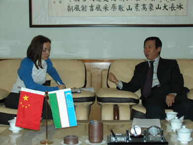 2009年3月17日,中国驻乌兹别克斯坦大使于洪君在使馆接受了乌《生意伙伴》周报记者的采访。