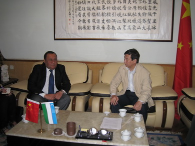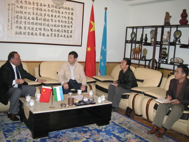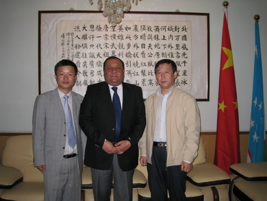 2009年4月14日,乌兹别克皮革工业协会主席阿塔纳诺来使馆拜会于洪君大使。