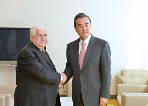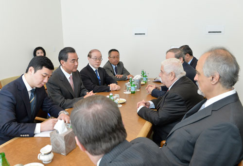 2013年9月27日,外交部长王毅在联合国会见了叙利亚副总理兼外长穆阿利姆。