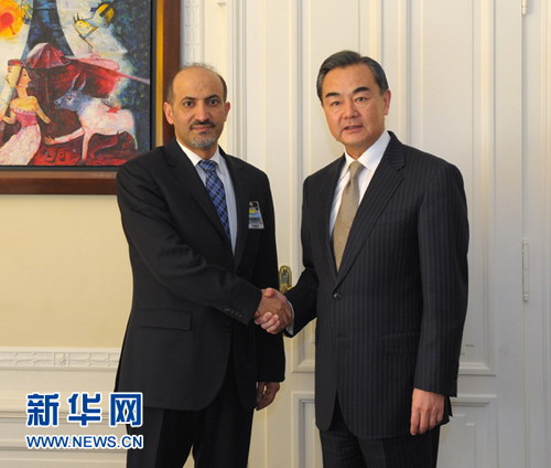 2014年1月22日,外交部长王毅在瑞士蒙特勒分别会见叙利亚副总理兼外长穆阿利姆和叙利亚反对派组织“全国联盟”主席杰尔巴。
