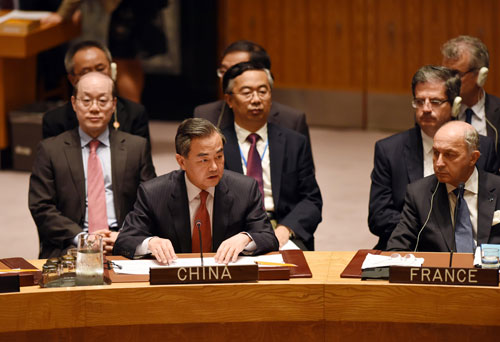 当地时间9月30日,外交部长王毅在美国纽约联合国总部出席“解决中东及北非地区冲突和应对地区恐怖主义威胁”安理会部长级会议,就叙利亚问题阐述了中方立场。