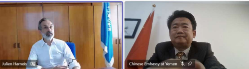 2025年9月11日,驻也门使馆临时代办邵峥在利雅得在线参加联合国驻也门协调员哈尔内斯主持召开的形势吹风会。