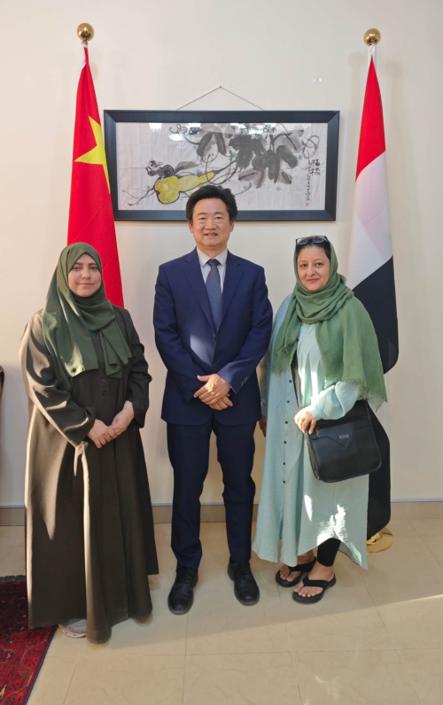 2025年10月13日,驻也门使馆临时代办邵峥在利雅得会见也门新闻部国家妇女和儿童媒体项目负责人丽萨一行。