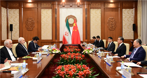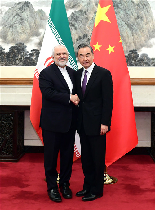 2019年5月17日,国务委员兼外交部长王毅在北京会见伊朗外长扎里夫。
