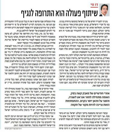 2020年4月2日,以色列发行量最大的希伯来语报纸《今日以色列报》以《合作是治疗新冠病毒的良药》为标题(原标题为《团结合作是最有力的武器》),刊登驻以色列大使杜伟的署名文章。全文如下: