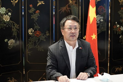 2020年8月26日,驻以色列使馆临时代办戴玉明与以色列以亚商会会长、前驻华大使马腾举行视频会议以中商会会长阿莫斯等在线参加。
