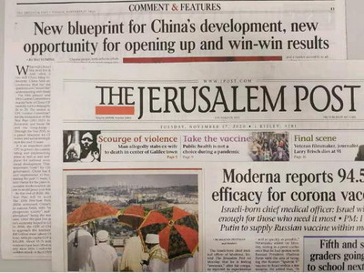 2020年11月17日,以色列发行量最大的英文报纸《耶路撒冷邮报》刊登驻以色列使馆临时代办戴玉明的署名文章,题为《中国发展新蓝图,开放共赢新机遇》,介绍中共十九届五中全会精神。全文如下: