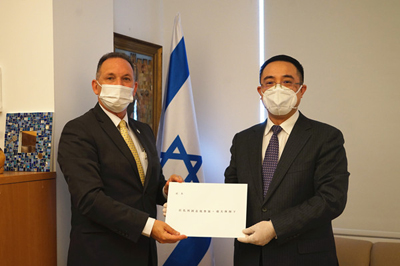2021年2月8日,新任驻以色列大使蔡润向以色列外交部首席礼宾官哈斯科尔递交国书副本。