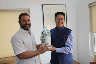 2016年3月22日,驻印度大使乐玉成与印度国大党副主席拉胡尔·甘地会见,就党际交往、党的建设、中国经济及国际地区形势等交换了看法。
