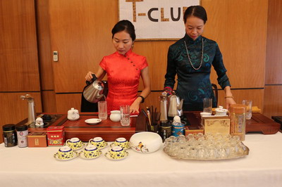 使馆女外交官身着华美的旗袍,以优雅娴熟的技艺逐一烹制龙井、乌龙、茉莉花和普洱茶,向来宾详细讲解了中国茶的历史、种类、功效以及烹茶、品茶和茶具艺术。