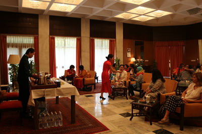 出席活动的30余位驻印使节夫人及印度友人兴致盎然地观看了表演,在茶台前闻香品茗,驻足流连。大家对香气馥郁的中国名茶、精美的茶具和全自动茶台赞叹不已,并认真询问了选水、用器、冲泡技巧等感兴趣的问题。