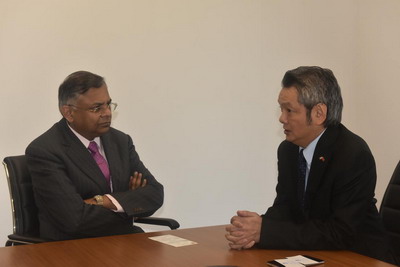 郑总领事首先祝贺陈哲博士就任塔塔集团主席,表示塔塔集团是在国内外享有盛誉的跨国公司,与中国有密切的合作,在华销售额近百亿美元,中共十九大召开后,中国对外合作将迎来更为繁荣昌盛的局面,希望塔塔集团继续扩大与在印中资企业的交流与合作,分享国际化成功经验。郑总领事欢迎塔塔集团参与“圣水外交”等文化交流活动,在促进中印两国关系健康稳定发展方面发挥更大作用。