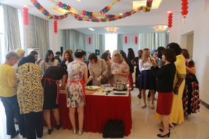 江参赞欢迎大家做客使馆,介绍了中共十九大和中国妇女事业发展,以及中国服饰和饮食文化。