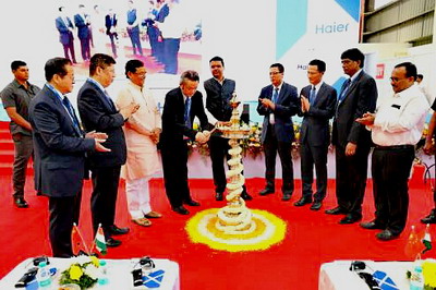 2017年11月16日,海尔浦那工业园二期项目投产仪式在浦那举行。印度马邦首席部长法德纳维斯、驻孟买总领事郑曦原、海尔集团董事局副主席兼执行总裁梁海山等出席并致辞,海尔电器印度经销商、海尔集团总部家电产品负责人及中印媒体代表300多人参加仪式。