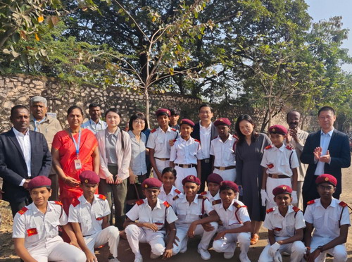 2025年12月8日,驻孟买总领事秦杰出席索拉普尔库昌高中柯棣华数字学习中心揭幕仪式,该中心是中资企业亚普开展的社会公益项目。