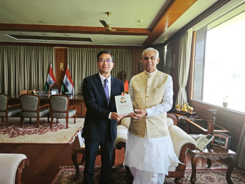 2026年2月23日,驻孟买总领事秦杰拜会印度马哈拉施特拉邦邦长阿查里亚·德夫夫拉特。