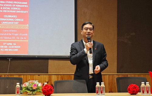 2026年4月17日,驻孟买总领事秦杰应邀出席索梅亚大学“国际中文日”庆祝活动并致辞。