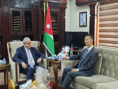 2026年1月8日,驻约旦大使郭伟会见约旦卫生大臣易卜拉欣·巴杜尔。