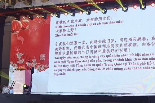 2025年12月21日,驻胡志明市总领事唐立出席越南中国总商会浙江企业联合会2026跨年联欢晚会。胡市工商会主席陈玉廉,著名华人朱应昌,越南中国总商会胡市分会及各省企业联合会代表等900余人出席。