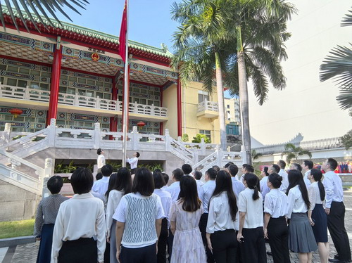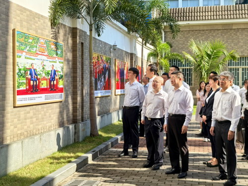 在庄严的升旗仪式后,唐立总领事为元首外交图片展揭幕,表示图片生动记录了在习近平总书记的战略擘画和亲自推动下,元首外交引领中越友好合作迈上新台阶,两国携手构建具有战略意义的命运共同体的丰硕成果。总领馆愿同领区各界一道,不断深化两国传统友谊,推动各领域务实合作在南部地区走深走实。